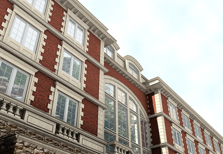 Bayou Residence - Apartment building rear facade.